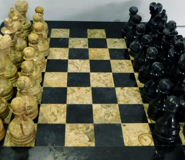 Chess Set 41cm x 41cm Coral & Black Marble