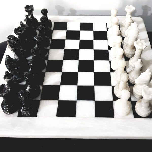 Chess Set 30cm x 30cm Black and White Marble